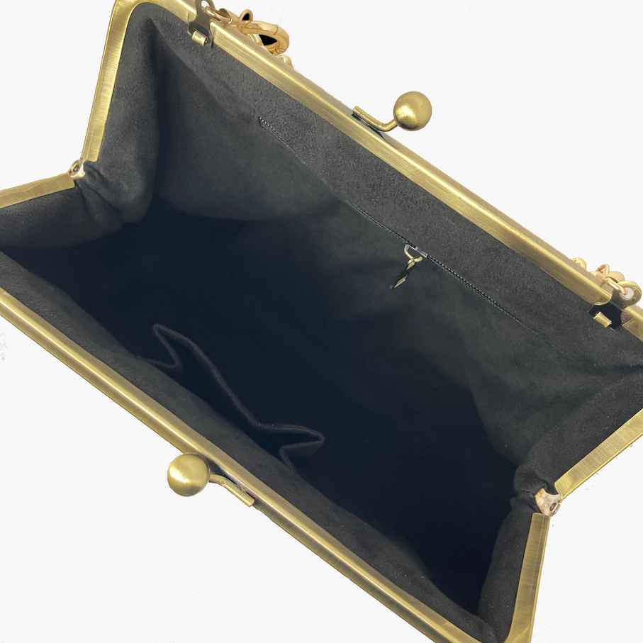 Interior: Black suede with 6 inch zipper pocket and a key pocket.
